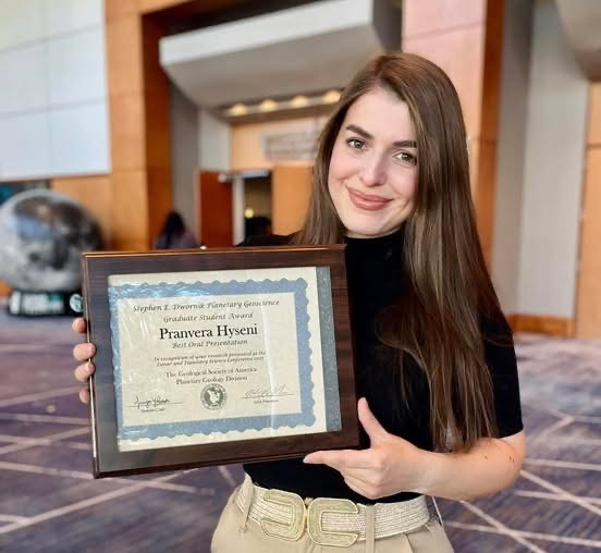 Astronomja kosovare, Pranvera Hyseni është shpërblyer me një nga çmimet më prestigjioze në astronominë planetare. Ajo është shpallur fituese e Çmimit “Stephen E. Dwornik” në Astronomi Planetare, i ndarë nga Divizioni Planetar i Shoqatës Amerikane të Gjeologjisë, për prezantimin më të mirë shkencor në nivel doktorature.