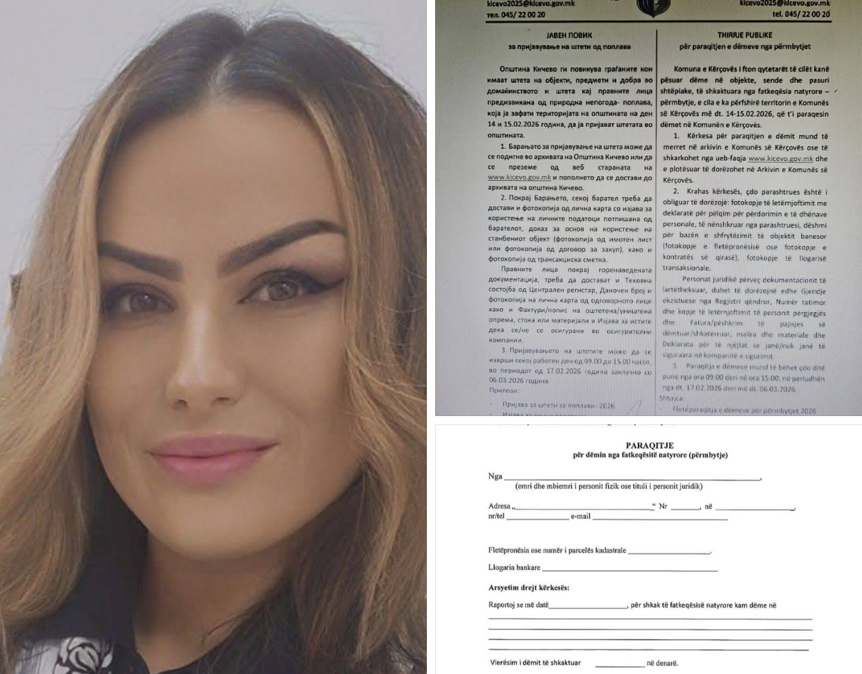 Këshilltarja në Komunën e Kërçovës nga radhët e AKI-së dhe avokatja e njohur Syarta Saliju Osmani apelon te të gjithë qytetarët e që kanë pësuar dëme nga përmbytjet t’i paraqesin ato sipas shpalljes së komunës.